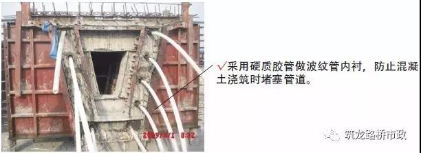 1) 在鋼筋綁扎過(guò)程中,應(yīng)根據(jù)設(shè)計(jì)精確固定波紋管和錨墊板位置。